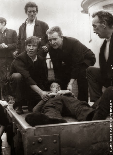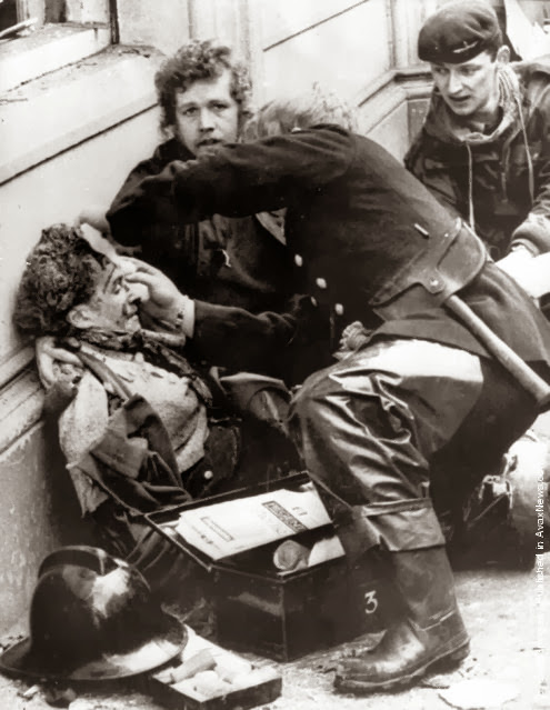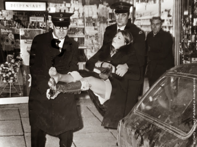 | Gyógyszertári lövöldözésben megsérült civil nő. (Fotó: Keystone/Getty Images). 1971. november 28. |