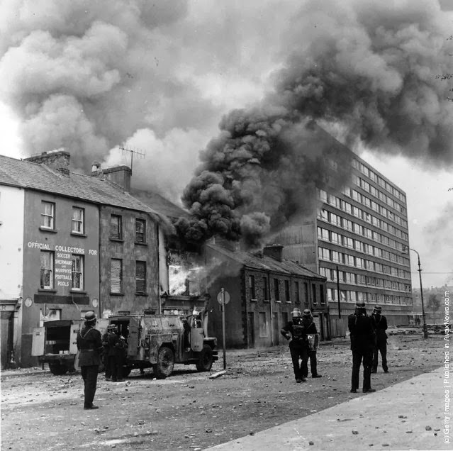 Bombatámasás egy Bogside negyedben lévő lakóházban Belfastban. (Fotó: Jones/Evening Standard/Getty Images). 1969. augusztus 13.