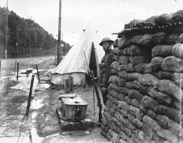 | Brit katonák védekező állásban a Falls Road-on. (Fotó: Wesley/Keystone/Getty Images). 1970. július 4. |