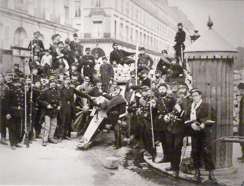 Barikád és kommünárdok a Voltaire és Richard-Lenoir utca kereszteződésében