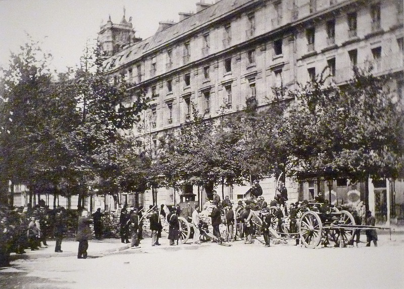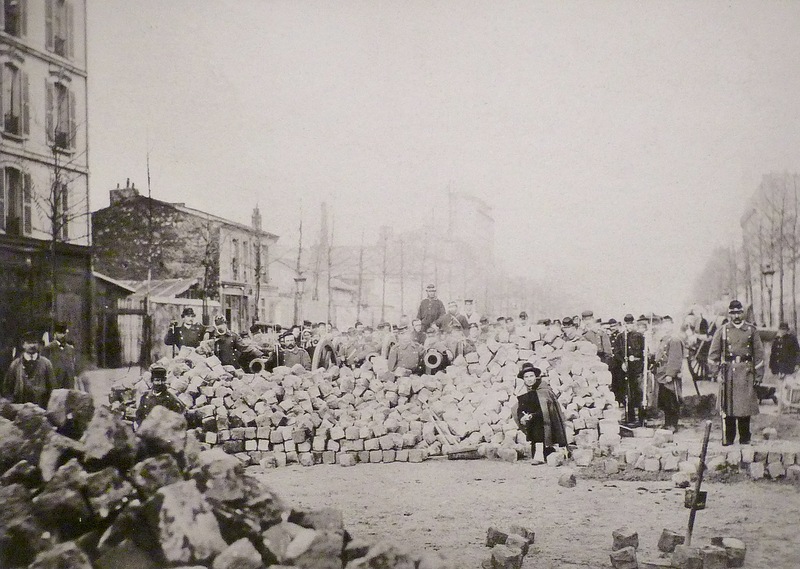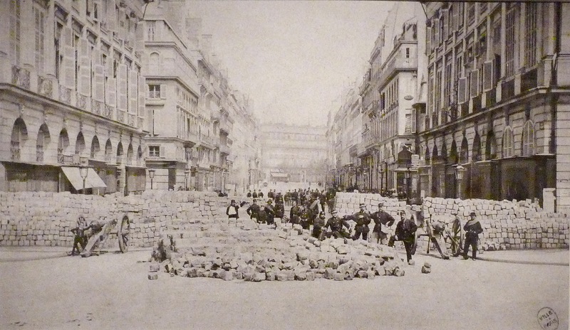 Utcai kockakövekből emelt barikád a Place Vendôme-ön